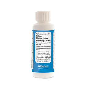 Zamjenski uložak za linijski sustav za čišćenje brodskih zahoda PN 12-03-008 s T-priključkom. 100 mL (3,4 US fl.oz.), traje do 1000 ispiranja. Čisti i dezodorira zdjelu, linije i pomaže u razgradnji čvrstog otpadnog materijala sa svakim ispiranjem. Upute: Za promjenu boce okrenite T-priključak uspravno i zavrnite zamjensku bocu. Voda neće nestati. Sa svakim ispiranjem In-Line Marine Toilet Cleaning System će vam dati čist i svjež miris. Polako otpuštajte formulu. Pažnja: Prije postavljanja ili mijenjanja boce uvijek zatvorite ventile za more! Ne izlagati toplini. OPASNOST Upozorenja o opasnostima i mjerama opreza: Izaziva iritaciju kože. Može izazvati alergijsku reakciju kože. Uzrokuje ozbiljno oštećenje oka. Otrovno za vodene organizme s dugotrajnim učincima. Ako je potreban liječnički savjet, imajte spremnik ili naljepnicu pri ruci. Čuvati izvan dohvata djece. Izbjegavati ispuštanje u okoliš. Nositi zaštitne rukavice/zaštitnu odjeću/zaštitu za oči/zaštitu za lice. U SLUČAJU DODIRA S KOŽOM: Oprati s puno sapuna i vode. AKO DOSPE U OČI: Oprezno ispirati vodom nekoliko minuta. Uklonite kontaktne leće, ako ih imate i ako ih je lako učiniti. Nastavite s ispiranjem. Odmah nazvati CENTAR ZA KONTROLU OTROVANJA/liječnika. Odložite sadržaj/spremnik ovlaštenom mjestu za rukovanje otpadom Sadrži: >30% anionskih površinski aktivnih tvari, limonen, LINALOOL UFI: NXF1-Y01G-H00M-QJ4F