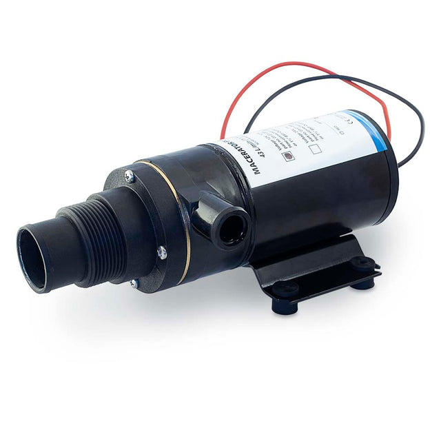 Macerator pumpa 12V opremljena rotirajućim rezačem i impelerom za ispuštanje otpadne vode velikog kapaciteta. Kapacitet 43 L/min (11,5 GMP) izlaz na 4 m ukupne visine. Samousisavajuća do 1,5 m vertikalnog podizanja. Unutarnji dijelovi od mesinga i nehrđajućeg čelika i tijelo pumpe od termo polimera s dugotrajnim impelerom. Ulazni otvor 38 mm (1,5") i izlazni 25 mm (1"). Jačina struje 12A. Zamjenjivo s Jabsco 18590-2092, Johnson pumpom 10-24453-04.