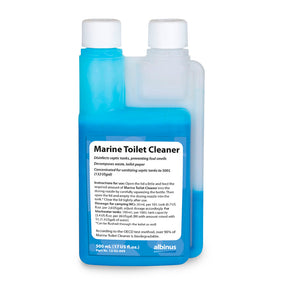 500 mL (17 US fl.oz.) WC koncentrata za sve WC-e sa spremnicima. Razgrađuje otpad, toaletni papir i sprječava neugodne mirise. Dezinficira spremnik za skladištenje na 500 L (132 USgal). Upute za uporabu: Malo otvorite poklopac i pažljivo stišćući bočicu dodajte potrebnu količinu Marine Toilet Cleaner-a u dozirnu mlaznicu. Zatim otvorite poklopac i ispraznite mlaznicu za doziranje u spremnik. Nakon upotrebe dobro zatvorite poklopac. Doziranje: za WC školjke za kampiranje 20 mL po spremniku od 10 L (0,7 US fl.oz. po 2,6 USgal), prilagodite dozu prema tome. Za spremnike: 100 mL po kapacitetu spremnika od 100 L (3,4 US fl.oz. po 26 USgal) [napunite količinom pomiješanom s 5 L (1,3 USgal) vode]. Prema metodi ispitivanja OECD-a, više od 90% sredstava za čišćenje morskih toaleta je biorazgradivo. OPASNOST Upozorenja o opasnosti i mjerama opreza: Štetno ako se proguta. Izaziva iritaciju kože. Može izazvati alergijsku reakciju kože. Uzrokuje ozbiljno oštećenje oka. Otrovno za vodene organizme s dugotrajnim učincima. Čuvati izvan dohvata djece. Nemojte jesti, piti ili pušiti kada koristite ovaj proizvod. Izbjegavati ispuštanje u okoliš. Nositi zaštitne rukavice/zaštitnu odjeću/zaštitu za oči/zaštitu za lice. U SLUČAJU DODIRA S KOŽOM: Isprati s puno vode. AKO DOSPE U OČI: Oprezno ispirati vodom nekoliko minuta. Uklonite kontaktne leće, ako ih imate i ako ih je lako učiniti. Nastavite s ispiranjem. Odmah nazvati CENTAR ZA KONTROLU OTROVANJA/liječnika. Odložite sadržaj/spremnik ovlaštenom mjestu za rukovanje otpadom. Sadrži: >30% anionskih površinski aktivnih tvari, limonen, metilizotiazolinon, metilkloroizotiazolinon, boje